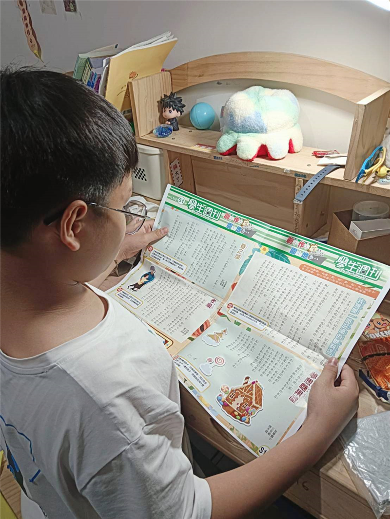 學生週刊成了我們一家人共讀的刊物,有時候會一起「動腦找一找」;討論「動物小王國、寶貝植物園」;和分享「生活小百科」;兄妹倆也會針對美語的部分練習發音和背單字;「漫畫百寶袋」更是哥哥最期待的單元;妹妹則喜歡挑戰「數學王國」和「小小畢卡索」。總之包羅萬象的文章,常常成為我們一家人茶餘飯後的聊天內容。坦白說我家老大正處於青春期,有稍稍的叛逆、但又礙於必須被爸媽管教的矛盾心理,「學生週刊」成了親子間的橋樑,好像又把我們之間的距離拉近了一些。
