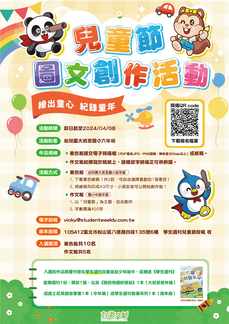 ▪ Google雲端下載:《學生週刊》2024兒童節圖文創作活動檔案 |
