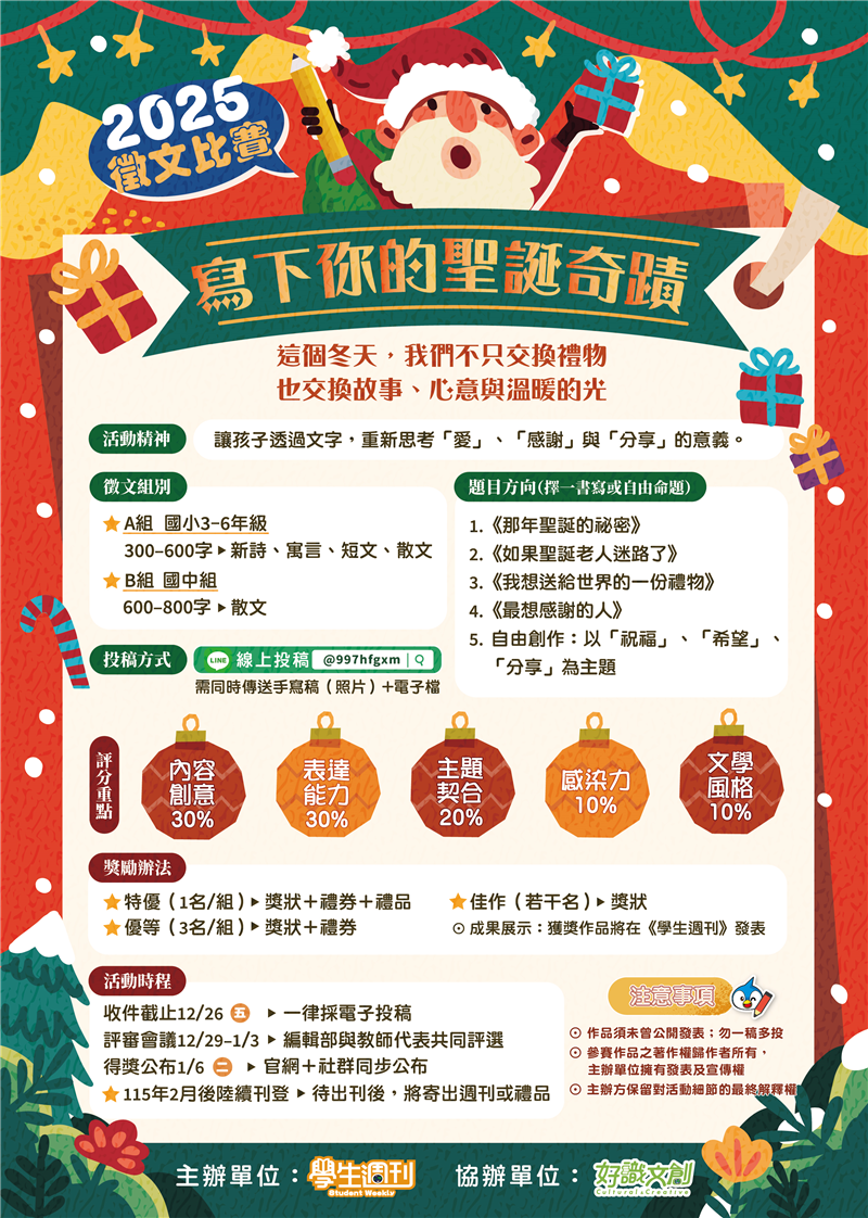 🎄✨【2025學生週刊徵文比賽|寫下你的聖誕奇蹟】✨🎄